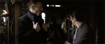 Of course, Bruce’s relationship with his father is at the heart of the film. He seems to spend most of the time searching for a replacement figure, and he find Ra’s Al Ghul. Al Ghul has always been presented as something of a potential father figure to Batman, a fact I think is related to the fact that he’s a character who tends to die. A lot. In the comics and cartoon, Al Ghul sought to make Bruce his heir, and there are hints of that to be found here. However, it’s Ra’s who continues the lessons from Thomas Wayne, and hits upon the idea that Bruce must become “more than just a man.”