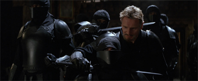 It’s interesting that Christopher Nolan would make Ra’s wear a mask during the final third of the film. Interestingly, it seems to foreshadow Bane’s appearance in The Dark Knight Rises. Both masks cover the mouths of the person involved, while Batman actually leaves his mouth exposed. It’s a vital piece of humanity visible. It’s interesting that Batman looks far less inhuman and threatening than Bane or Ra’s, despite the fact that his mask covers more of his face. (Bruce’s humanity is also reflected in his broader supporting cast. Ra’s doesn’t seem to surround himself with anyone other than anonymous mooks. He doesn’t even directly interact with the Scarecrow, his hired goon.)