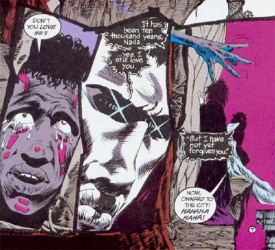 Throughout this series of issues (and, indeed,throughout the life of the comic), Gaiman paints a world robbed of the magic and mysticism that we used to take for granted. Whether it is the departure of the fearie folk in A Midsummer’s Night Dream or an imprisoned muse in Calliope, his stories feature a world where man has seen fit to tear away all the non-rational aspects of existence. Those that would once have been gods are now shells of themselves. This is a worls with which Dream – imprisoned for decades – is out of step, possibly fatally so.