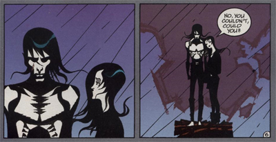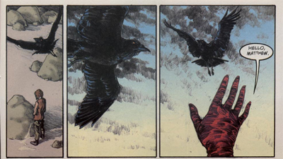 In the same way that Morpheus and Daniel are facets of Dream, or how Vixen is a facet of Hal, or how the three ladies are a facet of the Furies. We only ever see part of the cloth, never the whole think, a point that Gaiman hammers home by strategically cutting us out of the second arc, The Wake, at the moment that Daniel first meets his siblings or by having Loki mercilessly tease Carla that she will die knowing absolutely nothing about what is going on. It’s the way that life works. It isn’t pretty, but that’s it. Stories have many facets – many versions (which Gilbert used to delight in enlightening Rose with) – and we are arrogant to assume that we will ever see or understand them all. Illogical and irrational things happen, despite our own need to rationalise (Zelda’s death is the ultimate fluke – Hal has his version of how she contracted HIV, but Rose has another). Sandman features as many unseen important moments (the first meeting between Daniel and his family; the fallout between Hal and his former housemates) as it does important ones, because these are facets. We only see them when the light shines right – like we only discover about Morpheus’ romance with Larissa/Thessaly after the fact.