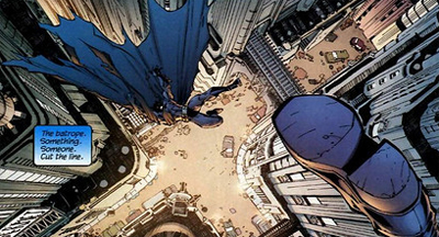 Gotham is a city so much a part of his identity that in some ways it is him. “This is my city,” Batman warns a police officer in the opening chapter. Visiting Metropolis, it’s immediately clear how far out of his element Bruce is in this strange land. “There are not many reasons for Batman to be in this city,” Bruce muses. He’s talking about what might happen if he’s seen, but it’s also a statement of principle. Bruce in Metropolis is out of his element. As Selina ponders, “Does it ever get dark in this city?”