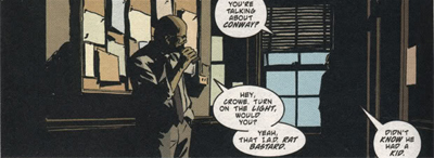 Batman here is a figure very much in the shadows. He appears in maybe a handful of panels in the entire collection and has a few sentences. He’s a ghost. And yet he shapes the city. He divides the detectives. Some (like Marcus Driver) see him as the craziness which draws the freaks to the city, while others (like Crispus Allen) see him as the glue which holds the city together. His presence soaks through the comic, even though he doesn’t appear too often – this isn’t a story fo Batman, this is the story of the city he has created.