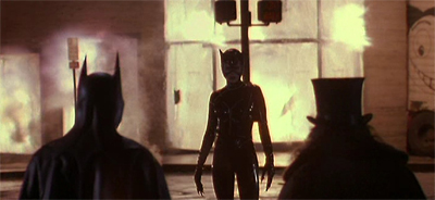 That, of course, is the point – Gotham City is run by a bunch of men who dismiss and demean the women around them to reinforce their own social standing. (Nobody ever seems to call the Penguin on his blatant misogyny, for example, even while running for mayor.) It’s hardly the most nuanced portrayal, but Burton’s films are never truly ‘real.’ They exist in a sort of heightened reality. After all, this is a world where dressing up as a giant bat is seen as a logical and reasonable thing to do. Selina’s transformation into Catwoman seems just as logical.