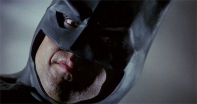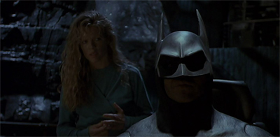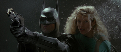 Vale recoils in horror from Batman, even after he saves her life and gives her vital information. However, if the movie accepts that Batman is Bruce’s true face, then it feels a little awkward that Vale is far more interested in the mask than the real man. It’s part of the reason that the romance with Selina Kyle works much better in Batman Returns, as she is interested in both facets of the character. Her duality reflects his, while Vale seems tenuously connected to the part of the character’s psyche that the movie deems least important.