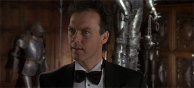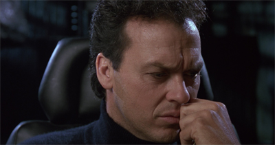 Jack Nicholson famously got top billing on the film, despite the fact that Michael Keaton was playing the eponymous character. Keaton has earned a bit of flack over the years for his portrayal, but I think he plays a great Batman. He’s a version of the character who really fits the template of a Burton protagonist. You can imagine Bruce just hanging out and chillaxing with Edward Scissorhands, for example. Keaton’s Bruce is introspective and isolated, which means that he’s a lot less enjoyable to watch than Nicholson’s extroverted Joker. However, I think Keaton’s Batman has a wonderful depth to him.