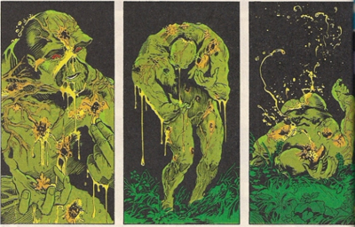 He is generally credited as the most definitive force in the history of Swamp Thing, crafting the most iconic depiction of the character and perhaps single-handedly ushering in a wave of post-modernism into the world of American comic books. The most obvious and important change which Moore made the character – and from which most of the rest of his adjustments to the character flows – was the revelation that Swamp Thing, previously the reincarnated murder victim Alec Holland and lead in a series of pulpy horror comics, was never really Alec Holland. He was, instead, a plant who thought that he was Alec Holland.