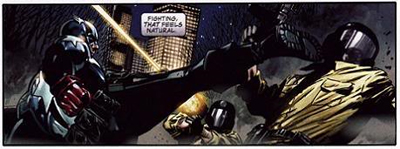 It’s interesting to see Brubaker deal with the death of Steve Rogers. It bears particular comparison to the other great comic book death of the same time – Grant Morrison’s execution of the Caped Crusader in Batman R.I.P. (yes, I know he actually ‘died’ in Final Crisis). It seems that Brubaker has executed a smoother dance than his counterpart at his ‘distinguished competitor’ – he was able to keep the title character’s death in his own book, for example (even rejecting certain storylines that would undermine the threads in the character’s solo series).