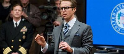 There’s the most obvious hint that the Iron Man 2 crew had their competitor on their minds in the final line for Stark before jumping out of an aerplane, assuring his secretary with the same words that linked the Joker and Batman, “You complete me”, as if to draw attention to the possibly over-the-top nature of that particularly line. But that isn’t the most interesting part of the trailer, nor is Mickey Rourke’s Russian accent or even Scarlet Johanssen. The most compelling glimpse of the movie is the first one we are offered, featuring Stark called before a congressional hearing concerning his Iron Man armour: