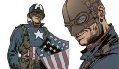I’m not sure that a ridiculous adjustment to the basic premise of the character is strictly necessary though. It might be worth looking to one of the sources which has heavily influenced the development of the on-screen Marvel universe, Mark Millar’s The Ultimates, a modern retelling of the origin of the team. The opening chapter gives us Steve Rogers on the front line, but with a very conscious redesign of his iconic uniform. Here’s some early concept art as an idea: