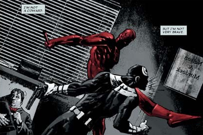 One of the better aspects about the Daredevil runs over the last few years have been how remote they’ve seemed in the wider context of the Marvel Universe. Living in the era of event comics, with one event rolling into the next (and then the next), where it’s impossible to read flagship books associated with upcoming film projects (like Brubaker’s Captain America or Matt Fraction’s The Invincible Iron Man) without being knee-deep in whatever the big event is at the moment. Instead, you can just pick up Daredevil and not worry about Civil War or Secret Invasion or any of that nonsense. Brubaker does throw in a few references to the wider Marvel Universe (the presence of the Hood, an Avengers adversary, in Hell’s Kitchen or a few references here-and-there to Civil War), but there’s no sense the reader is missing anything vital. The story functions of itself – which is really nice.