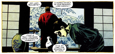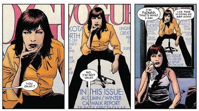 There’s a lot of moving on going on here. Brubaker realises he is leaving the title, and he begins cautiously tidying away his own clutter from the board. In Lady Bullseye, the eponymous assassin explains that she is “clearing away your problems, not targeting them.” Brubaker realises he will be passing on the title to a new author – Andy Diggle – and giving him a new status quo to play with, just as Bendis finished up his run offering Brubaker a new status quo to play with. In fairness, both authors fairly efficiently ‘decluttered’ the character before passing him on (“free of the tragedies of this life you’re led, Matt Murdock” – though the book suggests this view is too simplistic), but without employing a simplistic or convenient retcon. We don’t sigh with relief at the conclusion to the relationship between Milla and Matt, and it doesn’t swoop out of the sky from nowhere. It feels logical, and organic – and, in its own little way, tragic.