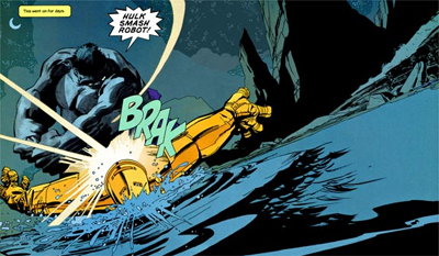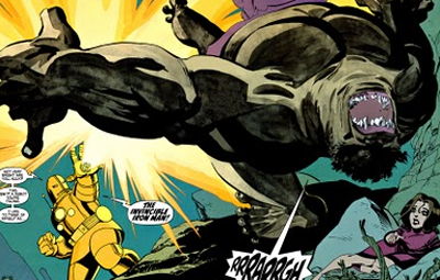 That said, the story is packed with rich imagery and some nice touches. There’s a scene in a cave during a downfall which calls to mind a similar scene in Louis Leterrier’s The Incredible Hulk (and, indeed, Leterrier cites this comic as a heavy influence on the movie). It would be easy to dismiss the atmosphere as the work of Sale, but Loeb writes a wonderful little story here. He brings in Iron Man for what amounts to an extended cameo, but it mostly works. It’s a nice quiet little tale, which ironically suits the big lumbering giant quite well.