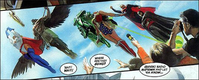 The superheroes take flight...
