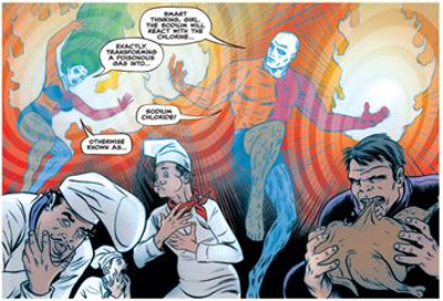 Along the way, Gaiman gleefully plays with the inherent cheesiness of the concept. “Kids! If your letter is used, you get a year’s free subscription to Metamorpho’s canine pal, Element Dog,” he cheekily suggests, as we wonder what kind of fictional world not only has a weekly Metamorpho comic, but a monthly one for his dog (indeed, the last page teases, “And don’t miss Metamorpho’s monthly comic… someday!”). Gaiman seems to realise that this project is essentially one driven by the artist rather than the writer, so he doesn’t offer anything too radical in terms of plotting or character – just allowing room for big visual setpieces.