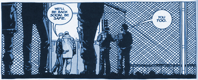And yet, for all my attempts to avoid reading too much into a series of events portrayed on the panel, I can’t help but feel uncomfortable as I read The Walking Dead. It’s not so much one large instance as a whole host of smaller ones. When Lori makes the observation that the four surviving prisoners residing in the correctional institution that our merry bad has arrived at (a legitimate concern given there are children with them), her husband tells her she’s wrong. “Rick, you’re right!” she declares in big bold letters, “Oh, god! I’m a h-h-horrible person!” To which her husband mutters, “Hormones.” Never mind her suspicions are eventually born out, she’s forever stuck playing the role of supportive and worrying wife, rather than a woman who, y’know, was right about not trusting those convicts. Indeed, every confrontation between the two ends with Lori apologising – when she makes a logical argument against an execution, she later grovels, “I’ve never had this much stress in my life,” as if it’s some kind of excuse.