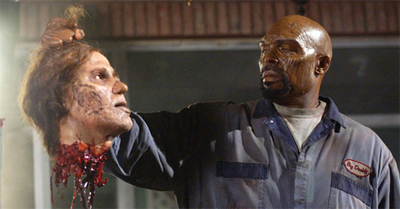 The most obvious – and divisive – example of this redefining is the way that Romero broaches the subject of zombie evolution. To some people, zombies are zombies. They lurch, moan and consume. That is all they are – they are a faceless threat against the humans holed up somewhere. Some people are very particular about their zombies and what they consider zombies – it’s blasphemy to suggest they can run, or that they are technically alive rather than literally dead. Here, however, Romero develops the themes he hinted at in Day of the Dead – that zombies are eventually capable of higher reasoning and use of complex tools.