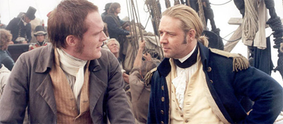 That said, there’s a lot to love here aside from the almost authentic feel. Russell Crowe makes a dapper leading man, here cementing the notion that he is the sort of swashbuckling actor that Hollywood has been missing for several decades now. He manages to give a bit of depth to Captain Aubrey, even as he has great fun playing what is essentially an archetype. The presence of Paul Bettany as the Captain’s closest friend (and musical partner) as well as the ship’s medic works well – Crowe and Bettany have a natural chemistry, as anyone who has seen A Beautiful Mind can attest. Some of the best moments in the movie put the two at odds – mostly in a conflict between rationality and tradition – while there is always a deeply-seated respect present between the pair.