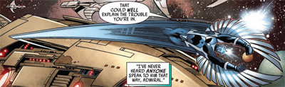 The conflict in War of Kings is not necessarily one dictated by realpolitik, but by bloodlust. Emperor Vulcan of the Shi’ar – who launches a campaign against his new neighbours based on a violation he perceived as “an invitation” – does not wish to force a surrender from his adversaries, nor to claim a sector or two of space. “I’m going to kill every last one of them!!!” Vulcan declares, advocating genocide and the desire to wipe his opponents out completely – were this a conflict confined to land, he would threaten to drive them into the sea.