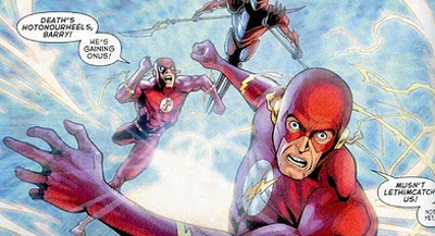 And yet, we can go home again. Barry can – as the personification of the good old days – return and make us heroes again. As he demonstrates with Iris, who has been waiting so long (“sorry I was late,” he touchingly apologises, in an ironic echo of the Silver Age tradition that – despite superspeed – he was never on time), love can conquer even the crippling anti-life equation. Even the strong and solemn Hawkman cannot contemplate living in a world devoid of love. The most powerful moments of Morrisons’ admittedly fuddled climax see the heroes facing their fate together (did anyone else hear the “finale” music from Lost in their heads during those scenes? no? just me?).