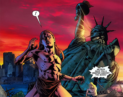 The image of fire is deeply engrained in Morrison’s tale – it’s a fitting metaphor for story (“fire of the gods”), which is his real subject matter here. Fire lights away the darkness, illuminates our world and grants us understanding – it was the first gift from the gods, millenia before the birth of Christ. It is also “our first big mistake”. It burns, it consumes, it destroys. Unfocused and uncontrolled, it is nothing but raw destructive power. And yet it entrances us.