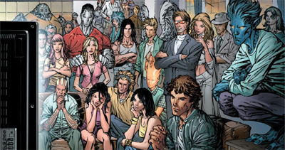 The X-Men themselves have had something of a crisis of identity – are they a superhero team or an allegory for prejudice? This is by no means a new issue – they debuted as a generic superhero team, with the subtext coming later – but it’s become more pronounced of late. Grant Morrison pitched his New X-Men as a high-level exploration of the concept of evolution, while Joss Whedon sold his Astonishing X-Men as a return to good old superhero values. Events in the Marvel Universe, with House of M drastically reducing the number of mutants and the Avengers becoming the publisher’s premiere team franchise, seem intent on restoring the team as a minority metaphor. Indeed, moving the team to San Fransisco and running Proposition X (as opposed to, I suppose, Proposition IX), the notion of “mutants as gays” seems to be the defining theme of the franchise.