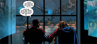 This is the fourteenth in a series of comic book reviews that will look at the direction of Marvel’s shared universe (and, in particular, their “Avengers” franchise) over the past five or so years, as they’ve been attempting to position the property at the heart of their fictional universe. With The Avengers planned for a cinematic release in 2012, I thought I’d bring myself up to speed by taking a look at Marvel’s tangled web of continuity. Get an overview of what I’m trying to take a look at here.