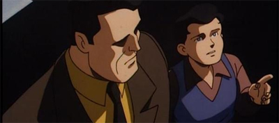 This isn’t Batman Forever. Dick’s parents don’t die in a noble sacrifice to save a circus full of people from an exploding bomb. They die in a random extortion attempt. Incidentally, that beautiful shot of the wire snapping was forced upon the series by the network censors, who refused a more graphic demise – as Bruce Timm notes in the commentary on the episode, perhaps that’s not a bad thing. The shot as composed is wonderfully artistic – with Dick’s parents swing off-screen, a silence falling and a cut cable swinging back into view. More than the shows that followed, Batman: The Animated Series had a strong artistic sense underlying it (calling back to the classic Fleischer Superman cartoons or even early Disney), and that single shot is a perfect example of that – calling to mind the death of Clayton in Disney’s Tarzan, for example. A perfect example of showing without actually showing, if you catch my drift.