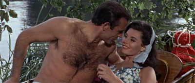 There’s a sense of playfulness here, which never veers out of control as it would with Roger Moore. However, one can feel the strong British wit and irony playing here. Bond is arrogant and full of himself, declaring, “and for my next miracle…” on entering the office. M blushes as Bond discusses an earlier encounter with a young lady while debriefing his current defector. A stereo plays the movie’s theme song. Sean Connery spends most of the movie with a smug smile on his face, as if he’s having a great time – Bond resolves a gypsy dispute by sleeping with both parties. The villains even know that Bond will be assigned the case, because – despite being a covert secret agent – he’s just that well known.
