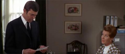 At the same time, the movie seems intent to compare Lazenby to Connery, constantly drawing attention to the change. “This never happened to the other fella,” Bond assures us at the end of the pre-credits sequence. There’s even a sequence with Moneypenny which is designed to assure the audience that things have not changed too much. “Same old James,” Moneypenny remarks, attempting to put our fears to rest, “perhaps even moreso.” However, even this interaction seems wrong, somehow. Lazenby certainly seems more “hands-on” than Connery with the secretary – or more direct about it, anyway. To quote the great Maury Zoolander, “Tushie squeeze!” Though it is nice that the movie finally acknowledges Moneypenny and the work that she does. It’s touching that both M and Bond acknowledge Moneypenny and how she’s good at managing the office. “What would I do without you?” they both ask.