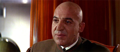 The presence of Telly Savalas doesn’t necessarily help. Even more than Lazenby makes a bizarre choice to succeed Connery as Bond, Savalas makes a bizarre choice to succeed Pleasance as Blofeld. “It’ll take more than cutting off your earlobes, Blofeld,” Bond warns him, “to turn you into a count.” But apparently that’s all it takes to turn Donald Pleasance into Telly Savalas. Pleasance is 5″6 (and seemed much shorter), while Savalas is 5″10 (but looks even taller). Pleasance gave the leader an ambiguously European accent and played him as subtly menacing mastermind, while Savalas plays him like an over-confident American mobster.