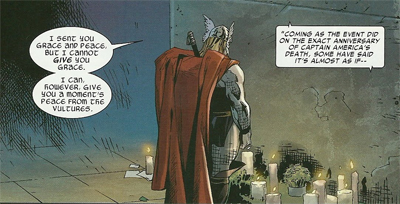 A: Yep, it’s an interesting dynamic. Captain America is a super soldier created by science. Tony Stark built himself a weapons suit. They’re both fairly technological heroes, so putting them on a team with a diety seems a bit… odd.