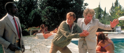 The movie loves its low-key spy stuff. “The snow this year is better at Innsbruck,” Bond’s contact introduces himself with the agreed phrase. “But not at St. Moritz,” Bond gives the expected reply. Bond uses very few gadgets this time around, with Q appearing mainly to use the “identigraph” to help Bond identify a henchman, and the movie feels very much like a “back to basics” spy thriller. The only problem is that it can’t be a classic spy thriller and still enjoy the sort of pantomime that the movies so regularly engaged in with Moore.