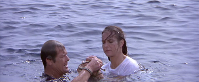However, there’s a particularly cringe-worthy scene here where Moore’s Bond declines sex from an attractive young lady named (in that fine Bond tradition of silly names) Bibi Dahl. The character (and actress) are over the age of twenty, yet Bond seems pretty much determined not to have sex with her, not matter how much she may protest that it “builds up muscle tone.” As she climbs into his bed, she coos, “I’ll do anything for you.” However, Bond isn’t tempted in the slightest as she removes her towel underneath the bedsheet. “I’m exceedingly flattered, Bibi,” he replies, as he politely declines.