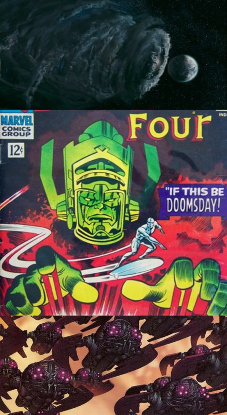 For those unfamiliar with the story, it’s essentially a retelling of the Galactus Trilogy, famously written by Stan Lee and Jack Kirby during their legendary run on the original Fantastic Four. It was an attempt to offer something a bit different from the “superhero against supervillain” routine, and grew out of the pair’s attempts to stretch their wings. Imagining an antagonist on a god-like scale, Kirby and Lee came up with the now iconic “Galactus: Devourer of Worlds” – a creation that is instantly recognisable to any comic book fan and would probably seem familiar to a large number of non-comic book fans. For the time, the concept of a planet-consuming force of nature and his “heralds” was radical – something new and bold. He’s gone on to be one of the most fascinating aspects of the Marvel universe.