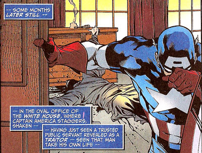 Nor should it mean that Captain America is considered synonymous with the American government. “I’m loyal to nothing, general–except the Dream,” he would tell a military officer in Frank Miller’s superb Born Again. During Jack Kirby’s run in the seventies, Steve was so disgusted by Watergate (or “the Secret Empire” – a stand-in for Watergate) that he gave up his title and lost his faith in the system. Mark Millar’s The Ultimates has a disillusioned Steve Rogers leave the US-run superteam when he grows tired of enforcing politicised foreign policy abroad. These are bold moral statements about the character. Indeed, they illustrate that he isn’t a patsy or metaphor for American colonialism – instead that he represents the resilience of the American people themselves.