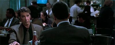 Both are great here. Admittedly one can see Pacino is on the cusp of adopting “enthusiastic shouting” as his approach towards the craft of acting, but he demonstrates restraint and understatement when needed. Still, when I think of Al “shouty” Pacino, the line “heard she got a GREAT ASS – and you got your head all the way up it!“ comes to mind (along with “GODDDDDDD!!!! is an absentee LANDLORD!“). However, Vincent Hanna is a character that you believe might actually talk that at times, and seems more like a real person than any character Pacino has played since then (save, perhaps, the lead in Insomnia).