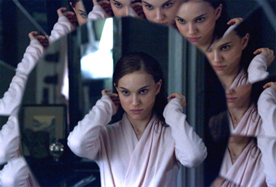 Marlisa Santos made the argument in The Dark Mirror that film noir was heavily driven by advances in the field of psychiatry during the forties and fifties and there’s certainly a strong element of that at play here. Doppelgangers, mirrors and (most obviously) heavily emphasised shadows were common devices used in classic noir to demonstrate a character’s darker nature, and one can spot a strong influence of the classic style on Aronofsky’s camera work – the camera is always closed tight on Nina when she’s out in the world, even when travelling in an almost empty subway car. The ballet study is (as one would expect) a hall of mirrors and some of the more subtly disturbing effects that Aronofsky employs involve reflections.