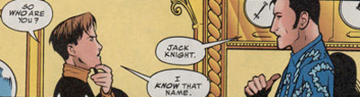 Stars My Destination is certainly a major shift for the series. All of a sudden, instead of hanging out with the Shade, a character created in the forties, Jack finds himself teaming up with a motherbox (a device associated with Jack Kirby’s New Gods). Jack is no longer teaming up with retired Justice Society members, but is instead brushing shoulders with Adam Strange and the Legion of Superheroes and Jor-El. However, at its core the themes remain the same. The cloth from which Robinson is weaving his epic may have changed, but the key points of the saga remain. Jack continues to explore lost moments from continuity – except instead of a random small-time crook it’s the story of how Jor-El ended up with a photo of a human farmer or what happened to the blue planet after Swamp Thing left.