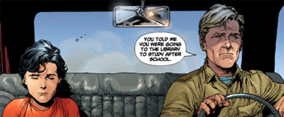 Personally, I think that Clark is Superman shunting a little responsibility – it allows him to live the life he would have had if he really was Pa and Ma Kent’s son. I’m not pretending he doesn’t deserve it or anything, but it’s still curious how a man who vows never to tell a lie can have a secret identity. I understand why he won’t give that up – but I’m curious to know if Clark will acknowledge to himself he’s being a tiny bit selfish, or if he can’t admit it to himelf.
