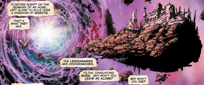 The Legion themselves are the most child-like of superhero teams. “Although you are men and women, you still call yourselves boys and girls,” Brainiac 6 observes, as if drafting an accusation. Another individual suggests, “maybe it is time you grew up.” This image recurs throughout the story – the idea that the Legion is a silly, childish idea and that it should be put to bed, once and for all. The Legion finds its own relevance attacked on intellectual and ideological terms. Talking heads critique the “internal strife” and the soap opera that it creates, or the “male-dominated organisation.”