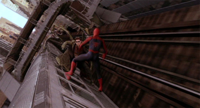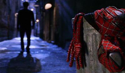 However, while Raimi toys with the idea of Peter Parker’s secret identity, he remains ultimately optimistic about it and the nature of people. While in the first film Osborn used Peter’s secret identity to screw with him, here the public give Peter back his mask (“we won’t tell no one,” some kids promise) and everyone seems genuinely supportive. This is in stark contrast to the way that, for example, Brian Bendis would toy with the notion of a not-really-secret identity during his run on Daredevil and Christopher Nolan would play Bruce Wayne’s secret in The Dark Knight. However, I suppose that’s in keeping with Spider-Man’s worldview, as opposed to the darker perspectives of those other characters – the notion that people (especially people who know) are basically decent and will keep the secret.