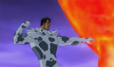 Still, there are awkward moments. In particular, Solaris’ appearance here seems even more random than it did in the original comic book (and it was fairly random there, too). It doesn’t help that the creature is rendered as something out of mid-seventies Doctor Who, sitting there glowing and occasionally speaking. Don’t get me wrong, “the Tyrant Sun” is a great concept (“your people will pray to me, or they will die in the cold dark”), but it’s one that doesn’t work well in animation, where he looks like a photoshop express. I don’t doubt there’s a way to make it visually compelling, but the way he’s presented here simply isn’t.