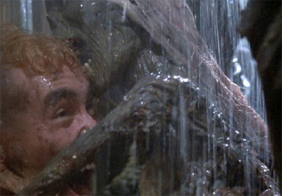 Part of the reason it works so well is because Dan O’Bannon clearly knows his source material especially well. He knows all the beats a monster movie should hit, and actually manages quite a few impressive special effects – I like the shot of the infected rain soaking down through the earth into the grave. There’s also an awareness of the clichés that one might associate with horror movies, to the point where, as a beautiful teen strips off her clothes, her friends casually observe that she’s “taking her clothes off again.” As if this happens in every graveyard they decide to crash. I also like the fact the film centres around two friends known as Burt and Ernie.