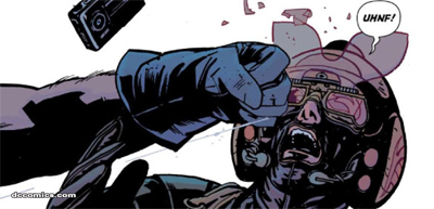 What’s remarkable here is how straight-forward Vaughan paints the superhero aspects of the world. Mitchell even gets a relatively long-term arch nemesis (who even gets to serve as his thematic counterpoint, talking to animals rather than machines) and inspires a copycat (“I was made by the great machine,” the vigilante boasts). Despite how cynical Vaughan might seem about the political aspect of the story, he seems hopeless optimistic about the superhero. There’s no doubt that Hundred had more of an impact as a guy with a jetpack than he does as a publicly elected official.
