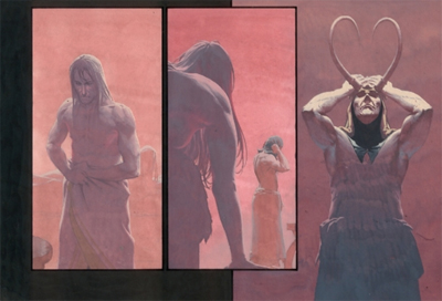 Esad Ribic draws an absolutely wonderful Loki. No longer youthful and cheeky, this is a version of the character who has been rendered ugly by his eternal struggles. His skin is stretched and wrinkled, and more than a few teeth are missing (I suppose from earlier confrontations). Ribic’s painted style is absolutely stunning, and fits the book absolutely perfectly. I looks lavish. Even if you aren’t into the whole meta-fictional aspect, or the focus on Thor’s arch-enemy, Ribics drawings are worth your time.