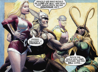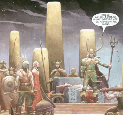 See, Loki doesn’t have the character of a leader. His characteristics make him the perfect foil to Thor, not the perfect leader of Asgard. Loki is perceptive enough to see that Asgard (and Loki) have made Thor the perfect hero, but he struggles with the realisation that Asgard (and Thor) have made him the perfect villain. That’s the true tragedy of the character. He accuses his fellow gos of being simplistic and trapped within their own patterns and cycles, but he struggles with his own.