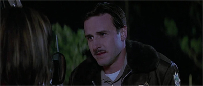 There’s also a sense that the movie is about a generation living in fear of its children. It captures the zeitgeist perfectly, as the late nineties saw a host of school shootings, the introduction of ASBOS and the general idea that children and teenagers could be just as dangerous as adults (the media certainly didn’t help, as teenage serial killers were hardly a new thing – look at Starkweather, for example). An early scene has a principal chastising two of his students as “heartless, desensitised little sh!ts” Indeed, the only adult suspect is, to quote Randy, “an obvious red herring”, so it seems early on that the person stalking the teen is a teen themselves. Considering the options, the police chief observes that he never could have suspected a kid twenty years ago, but times have changed. I think Scream captured that sentiment perfectly, that moment when we realised that soemtimes kids have to worry about other kids. It also wonders if we’re desensitised to violence on a cultural level – the murder spree leads to a spike in video rentals, after all, and inspires kids to run around in the slasher’s outfit. Are we numb?