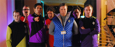 Unfortunately, though, we come to how the film deals with the other fan groups. It’s interesting that a movie going to such a large amount of effort to portray its central geeks as nice people with a sometimes excess interest in a particular niche past time, the movie then insists on returning to the most clichéd portrayal of geeks when it comes to Star Trek fans. While our leads have idiosyncrasies, they are constantly pitted against Star Trek fans who are small-minded obsessives who seem to just hang around in their geeky little uniform living in their own little fantasies. In short, they are pretty much every individual that William Shatner’s “get a life!” rant so cruelly mocked.