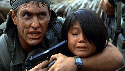 The problem with Barnes, apart from the actions he commits himself in service of his goals, is that his darkness infects and corrodes. It’s no coincidence that Stone takes care to populate the bunks of his followers with items like the Confederate Flag, and display most of his colleagues as racists and cowards. The evil that men can rationalise is truly terrifying, and it festers in soldiers like Bunny, who are more than willing to smash a civilian’s skull open or participate in a group-rape of a young girl. That sequence in the village is one of the most disturbing I ever recall seeing, despite the fact that it isn’t necessarily graphic. It’s distinctly unpleasant and uncomfortable, precisely because the participants in the violence are so casual about it.