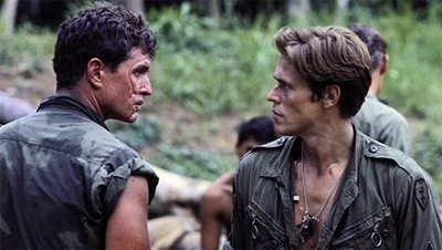 He’s introduced carrying his rifle like Jesus carried his cross. There’s that famous sequence that even people who haven’t seen the movie know, with Elias reaching out his hands to heaven. “Guy’s in three years,” one character observes, “he thinks he’s Jesus f**kin’ Christ or something.” Barnes dismisses Elias as “a water-walker.” Again, if not for the fact that Dafoe actually played Jesus Christ, the symbolism might seem a little heavy-handed. Fortunately, the performances and direction are good enough that it never overwhelms the film.
